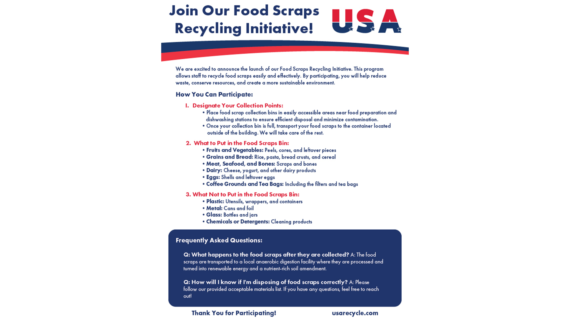 Learn how your school can partner with USA to establish a food scraps recycling program.